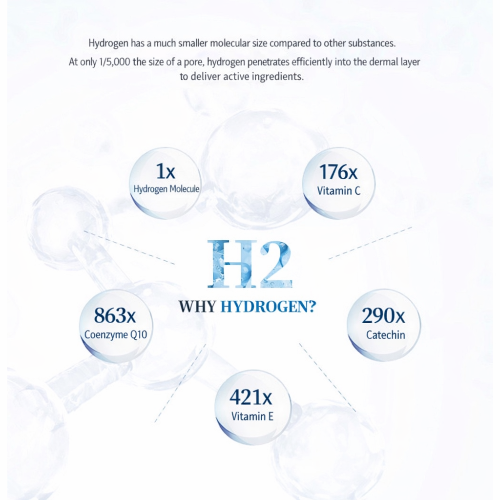 This mask is built around a hydration-first concept: hydrogen is positioned as a small molecule that supports delivery/comfort in masking, while the formula layers multiple moisturizing and plant-based soothing ingredients for a refreshed, calm-looking finish.